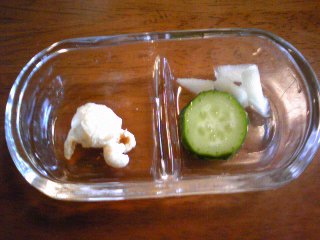 今日のご飯(ポップコーン、リンゴ、きゅうり)